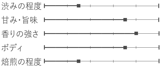 - フラワリー、スイーツ、渋みの少ない、厚みのある