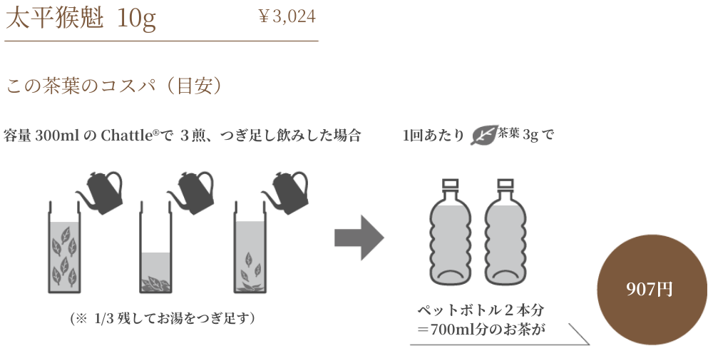 ※300mlのポットに対して(茶水が1/3程になりましたらお湯を注ぎ足します)