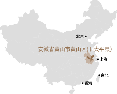 10㎝近い長さとペタンコにのされた外観があまりに印象的なこのお茶は、“歴史名茶”であり、常に“中国十大名茶”に名を連ねる、伝統と質を兼ね備えた中国を代表する緑茶です。安徽省黄山市黄山区明名郷の猴坑、猴崗、顔家を主産地とし、土壌といい気候といい、茶樹が良い茶葉を育てるのに適した条件を揃えた、海抜350mから750mの中低山地帯に茶園があります。1800年代中頃には既にこのお茶の前身とされる「太平尖茶」が作られていたとの記録が残っており、その後、長い年月をかけ、品質の向上とスペシャリティの確立を目指し、改良、改善が積み重ねられ、1900年、両葉抱芽,扁平挺直,自然舒展,白毫隠伏と形容される、現在の外観を作り出す製法が整う一方、“猴韻”と呼ばれ、蘭の花を思わせる高い香とすっきりとしていて厚みのある滋味を実現し、「太平猴魁」の名称が確定しました。この特徴的な外観と香味は、原料茶葉の茶樹品種である「柿大茶種」あればこそであり、また、茶葉を摘み取る際には、“四揀”(茶園、茶樹、枝、葉の選択基準)、“八不要”(摘み取ってはいけない茶葉の8条件)といったルールが厳格に決められています。そんな品質管理の徹底と生産量の少なさがこの茶葉をブランド品に押し上げ、一般的な緑茶価格の20倍近い価格で取引きされています。
