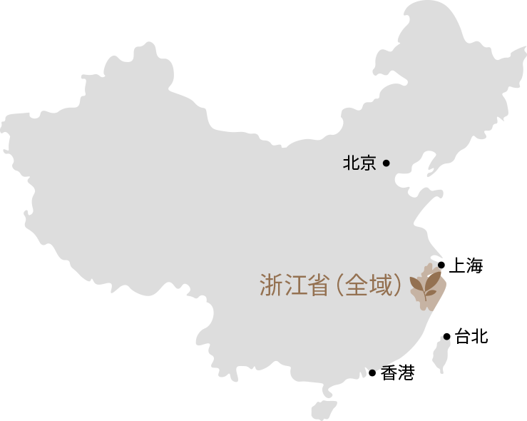 現在、「龍井茶」と名のって良い生産地の範囲は浙江省杭州市と隣の紹興市に限られています。いわゆる中国における"原産地保護指定”であり、お茶でこの指定を最初受けたのが「龍井茶」です。原産地は浙江省杭州市西湖周辺。中国茶の筆頭ブランドであることに、過言も他言の余地もありません。