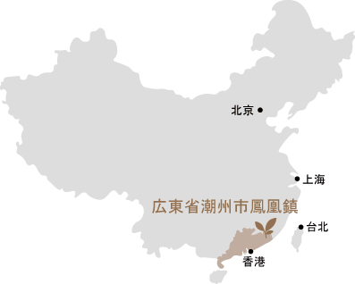 広東省の最も東寄りに位置する潮州市、標高1,000メートルを超す山々から成る鳳凰鎮を産地とする烏龍茶。肥沃な土壌に加え、年間を通じて降雨量が多く、昼夜の寒暖差により霧のかかりやすい気候は、茶樹の生育に最適な環境です。この地域での製茶の起源は古く、烏龍茶製法に限っても既に300年を優に超える歴史を有しています。1900年代半ばくらいまで、茶樹はほぼ野放し状態で栽培されていたため、樹齢100年、200年の茶樹が数多くみられ、今でもそんな老茶樹の葉で製茶が行われています。原料茶葉品種は「鳳凰水仙」の名称で1956年に登録され、花や果実の如き香りの高さを特徴とし、滋味の特色であるエッジの効いた軽やかな収斂感と共に“山韻”と呼ばれます。そんな茶樹ごとの“山韻”を尊重し、個性別に製茶をし、それぞれに茶名を付けてきた伝統製法に、茶樹の無性繁殖技術の進歩が後押しとなり、1980年代から更なる個別化=単ソウ化が強化され、今では香味に秀でた80を超える銘柄があり、代表的なものだけでも“鳳凰単ソウ十大蜜花香型名”と称し10タイプがあります。品質に応じて高いものから、「鳳凰単ソウ」、「鳳凰浪菜」、「鳳凰水仙」の3種に分類され、「鳳凰単ソウ」を名乗ること自体がすでに一定レベルに達している証拠と考えることができます。
