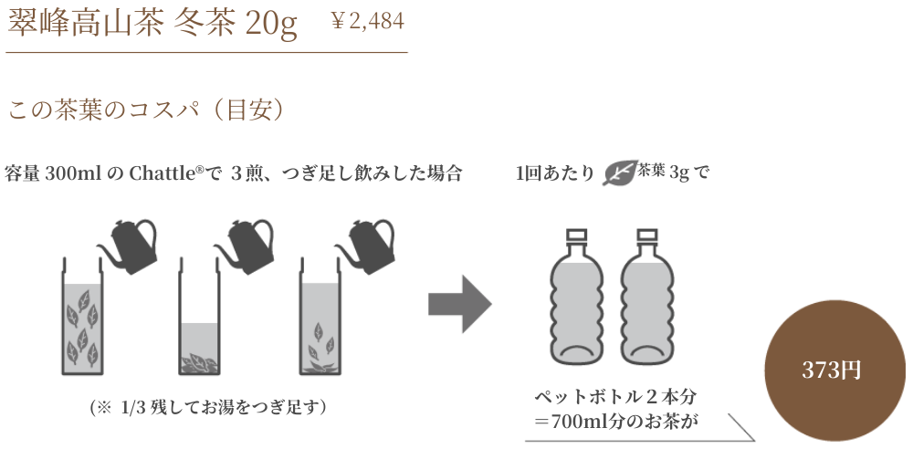 ※300mlのポットに対して(茶水が1/3程になりましたらお湯を注ぎ足します)